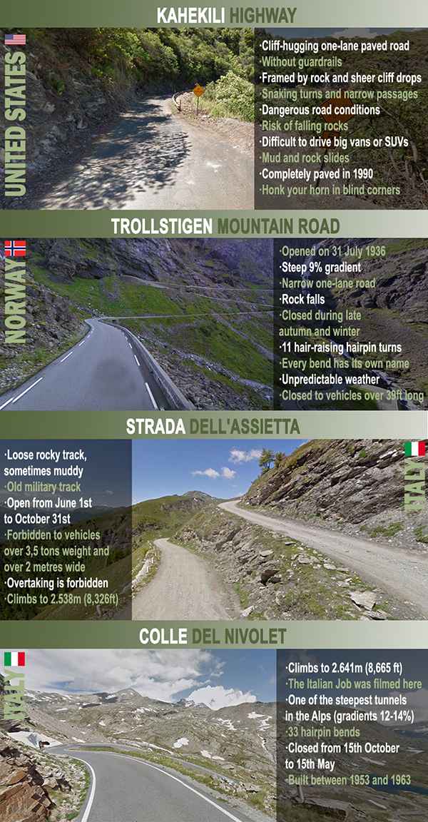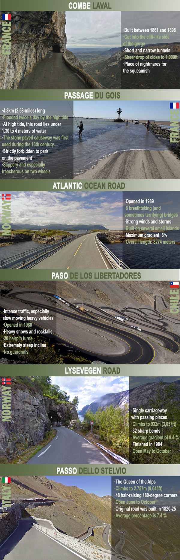 Embark on a journey with us as we share some of our cherished roads from around the world. This list is far from objective, and undoubtedly, we might be overlooking a few gems. Nevertheless, it's a delightful beginning. These roads aren't ranked by importance or preference; it's not a definitive 'best of the best' compilation. Instead, these are simply our favorites – each one extraordinary in its own right.