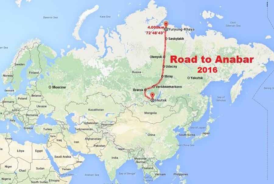 The drive runs south-north from Irkutsk (the classic Siberian capital) to Yuryung-Khaya. Located at Anabar Bay on the Arctic Ocean, Yuryung-Khaya is the administrative center of Yuryung-Khainsky National Rural Okrug of Anabarsky District in the Sakha Republic.